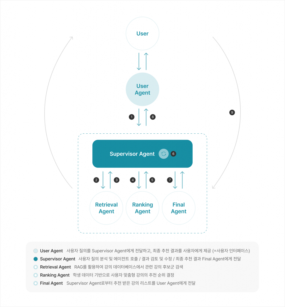 - Supervisor Agent는 추천 강의목록을 검증해 사용자에게 결과값을 전달