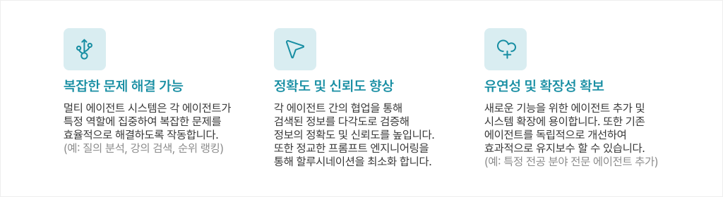 멀티 에이전트 시스템은 마치 여러 명의 AI 비서가 협력하는 시스템과 같습니다. 혼자서 모든 일을 처리하는 AI가 아니라, 각자 특정 역할을 맡은 여러 AI 에이전트들이 함께 작동하여 사용자에게 더 나은 결과를 제공하는 방식입니다. 예를 들어, NXT-EduAgent에서는 사용자 질의를 이해하는 에이전트, 강의 정보를 검색하는 에이전트, 그리고 사용자에게 맞춤형 강의를 추천하는 에이전트 등 다양한 에이전트들이 협력하여 작동합니다. 이러한 협력을 통해 사용자에게 더욱 정확하고 개인화된 강의 추천 서비스를 제공할 수 있습니다.
